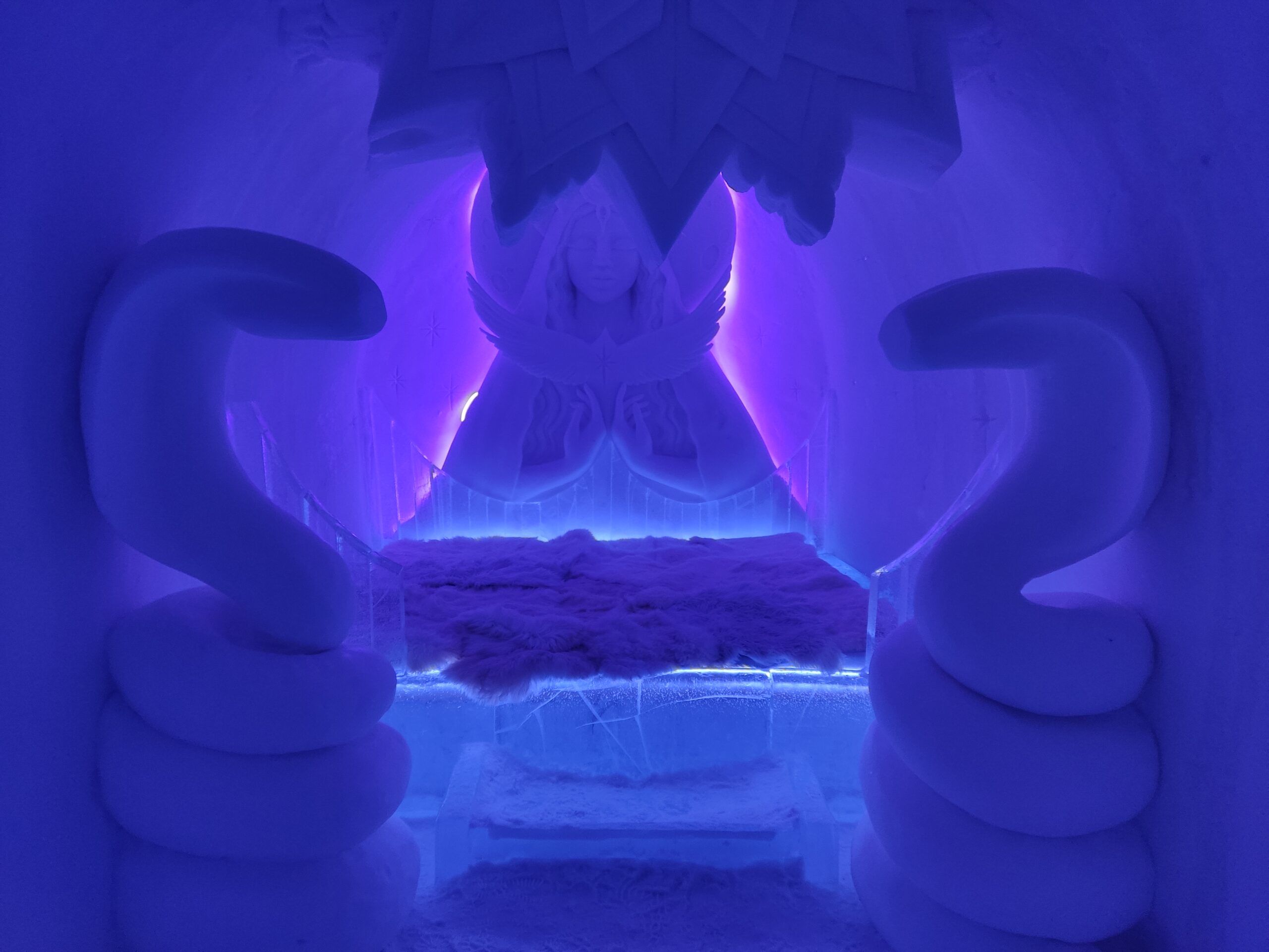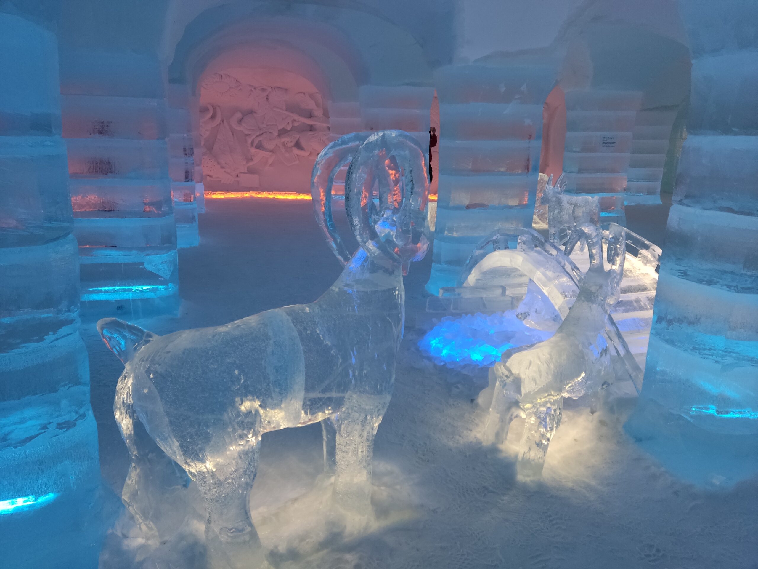 Am Tag darauf war für die Crew eine Exkursion geplant. Wir konnten mit einem Schneemobil fahren und danach das Eishotel Sorrisniva besichtigen. Dort waren verschiedenste Skulpturen aus Eis und Schnee ausgestellt, die von unterschiedlichen Künstlern gestaltet wurden. Die Suiten und Zimmer konnten wir auch erkunden, die nach verschiedenen Themen gestaltet waren. Diese sahen teilweise sogar sehr gemütlich aus. Bei der Hin- und Rückfahrt mit dem Bus war es sehr ruhig, da jeder die 30 Minuten pro Weg für ein Nickerchen nutzte.