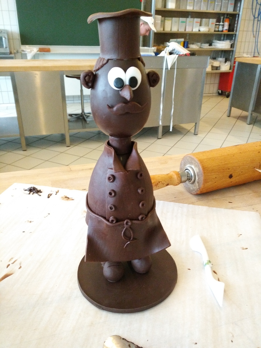 Als Abschluss gab es natürlich auch eine passende letzte Aufgabe: eine Schokofigur sollte es sein. Das „Grundgerüst“ war bei allen dasselbe, aber ab dann durften wir unserer Kreativität freien Lauf lassen.