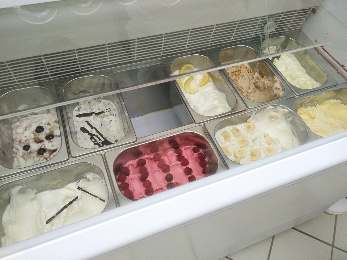 An Sorten hatten wir eine nicht ganz kleine Auswahl: Amarena, Stracciatella, Zitrone, Erdnuss, Ananas, Vanille, Himbeer, Banane und Kokos. Also da sollte für jeden etwas dabei gewesen sein.