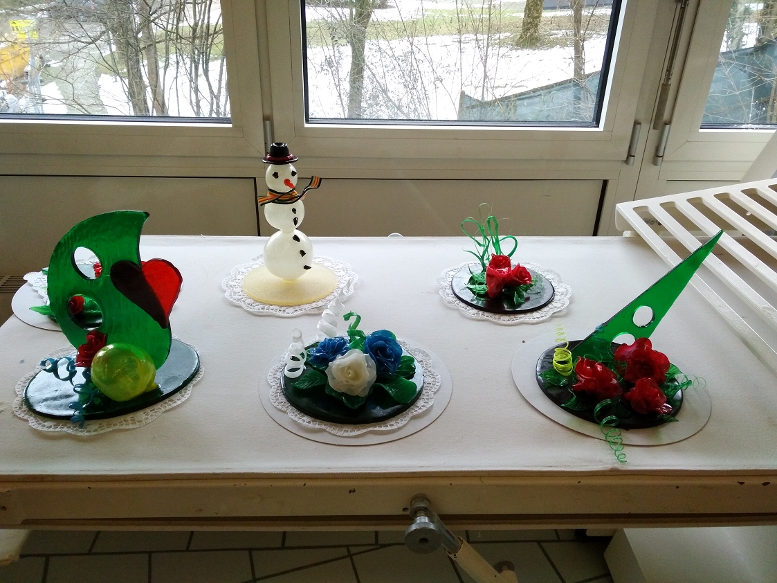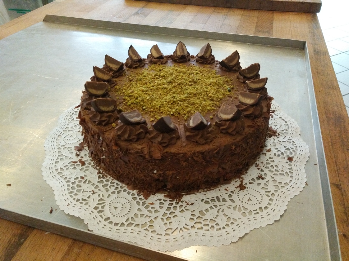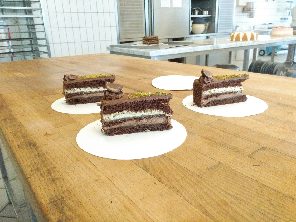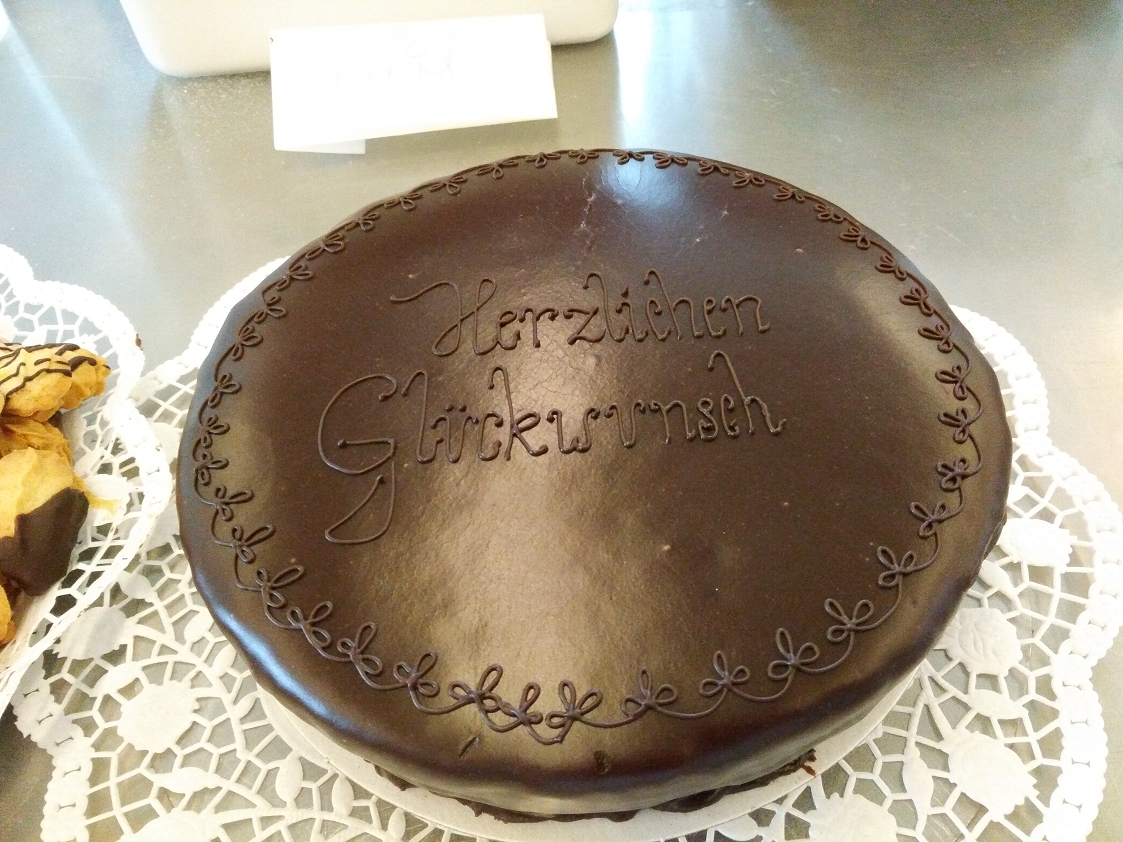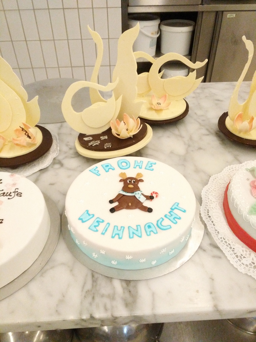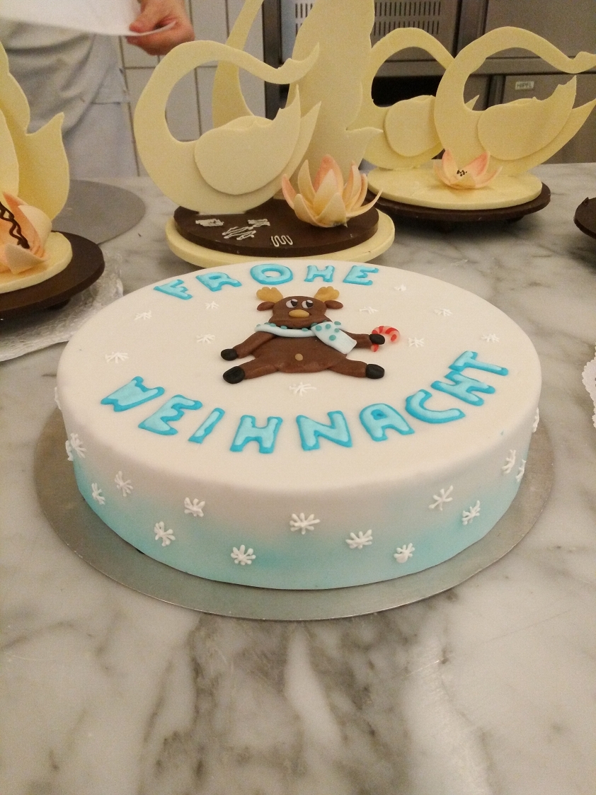 Klarerweise muss auch noch in der 4. Klasse viel für die LAP geübt werden, weshalb wir, wie jedes Jahr, wieder eine Sachertorte glasieren und verzieren mussten. Dabei sollte die Glasur so glatt wie möglich, und die Verzierung so gleichmäßig wie möglich sein. Andere Torten die wir noch üben durften waren eine Aufschnitt- und eine Festtagstorte. Als Festtag habe ich Weihnachten gewählt (der Elch kommt euch vielleicht bekannt vor), und für die Aufschnitttorte habe ich mich von Mozartkugeln inspirieren lassen.