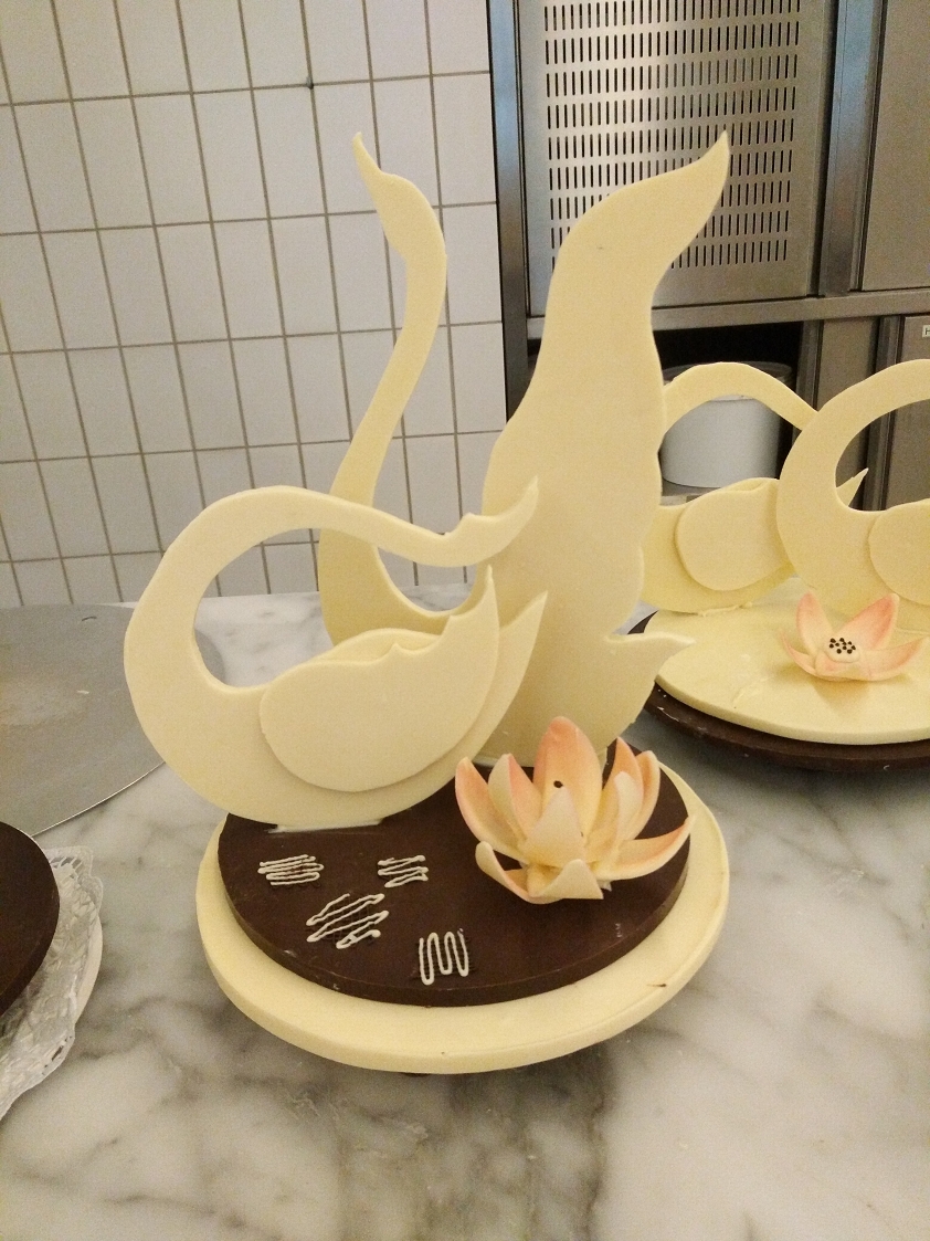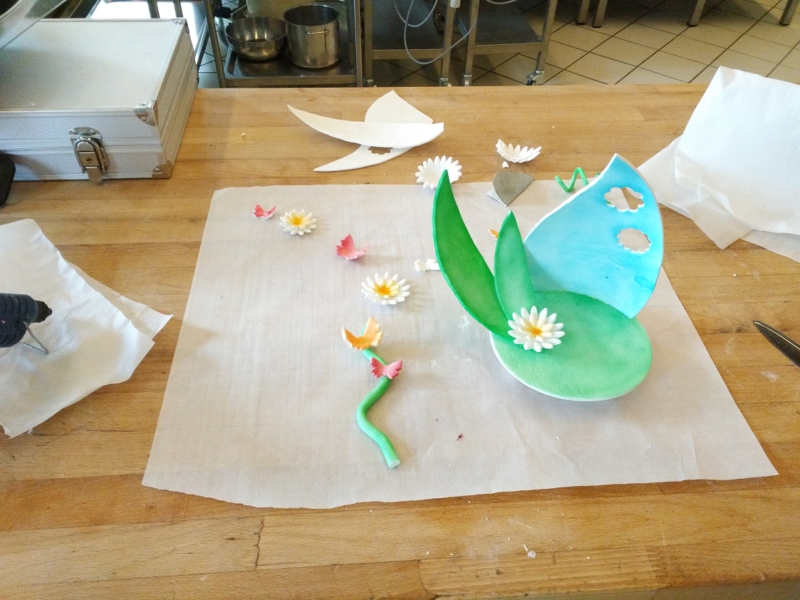 Schaustücke wurden heuer aus Schokolade, Zucker, Marzipan und natürlich auch wieder Teig gemacht. Den Kinderwagen zur Taufe habe ich schon einmal gemacht, mit ein paar Änderungen. Noch gefällt er mir nicht so gut, aber ich weiß auch schon, was ich gerne anders machen möchte.