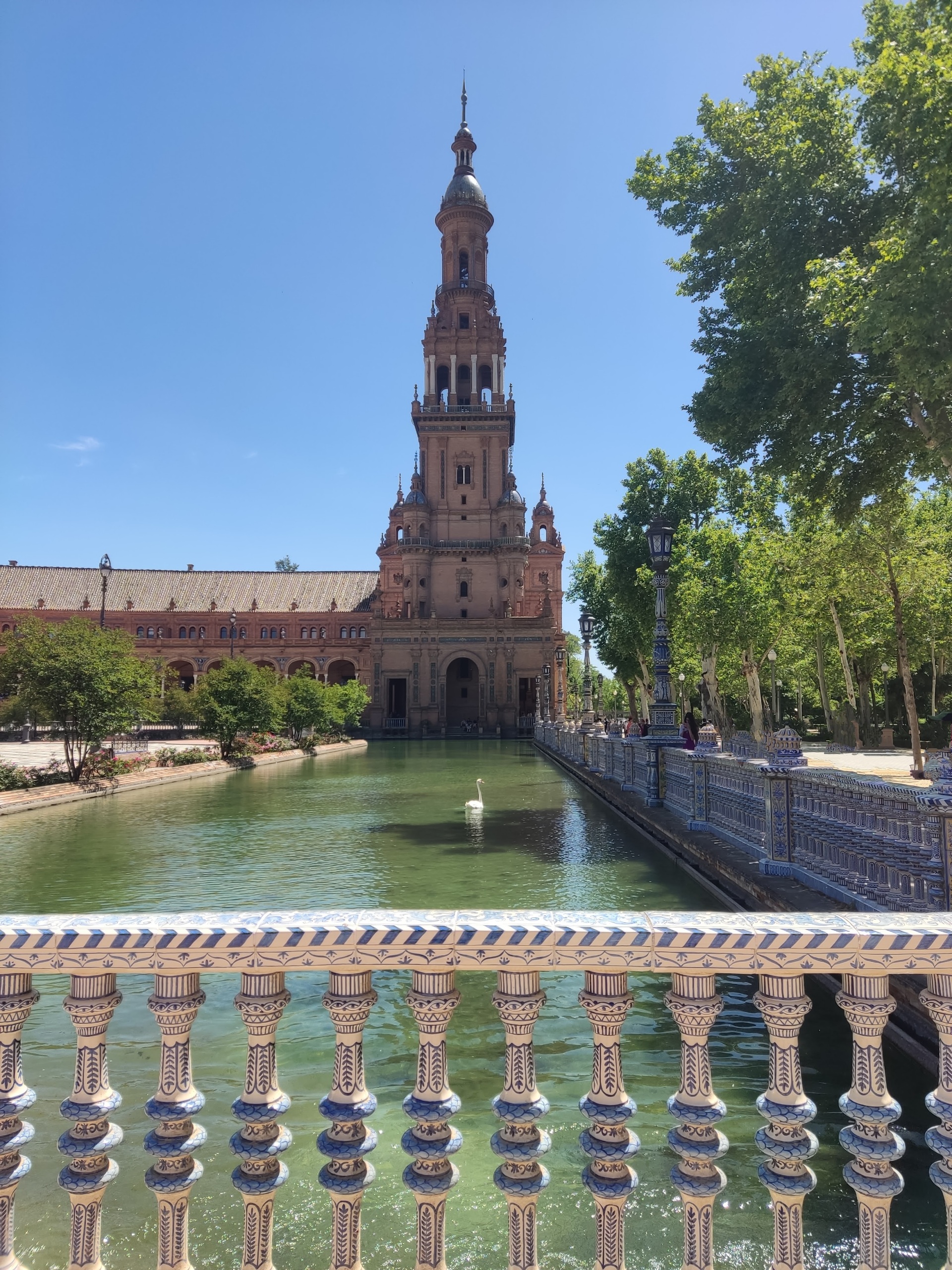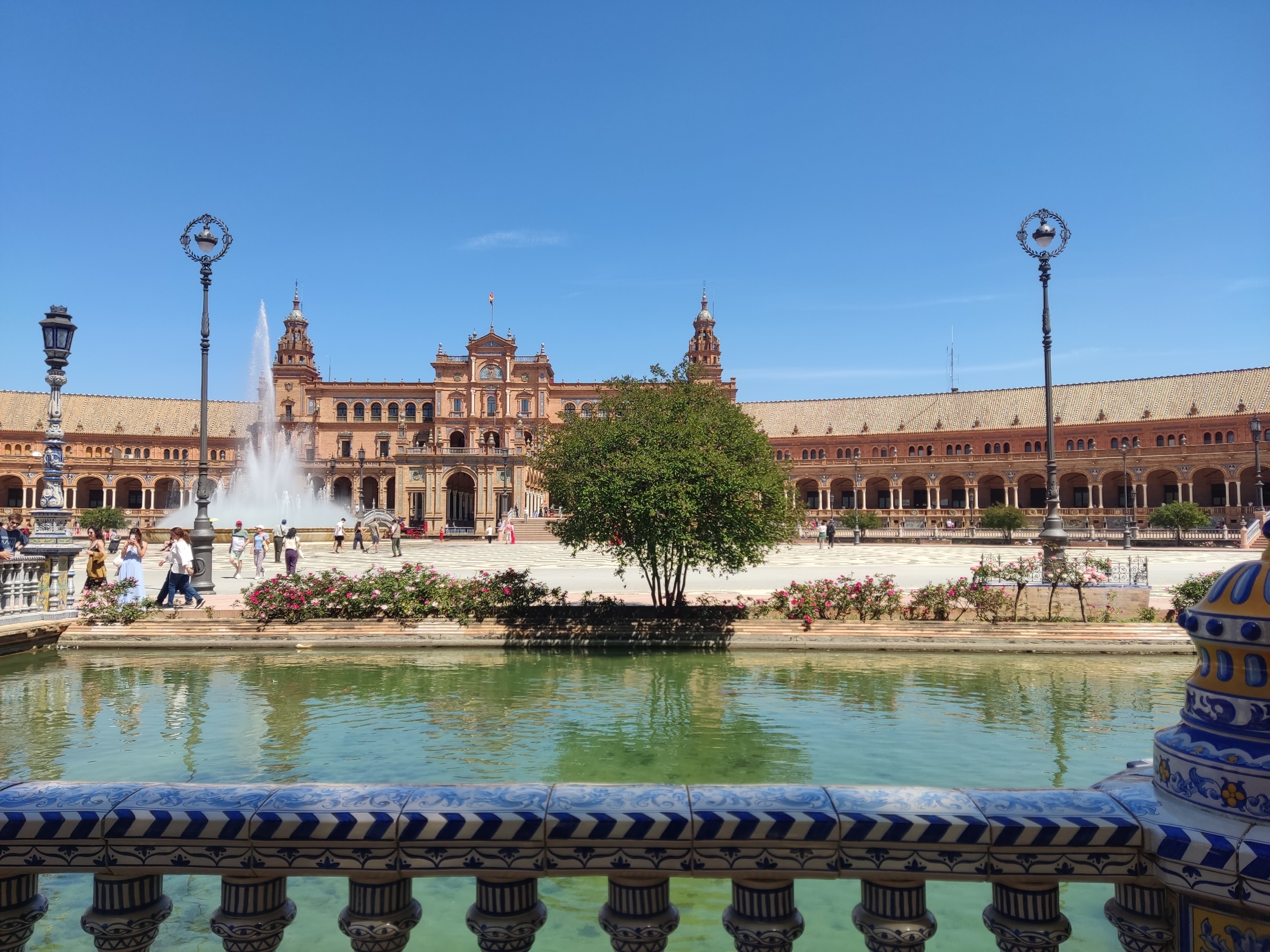 Leider konnten wir nicht so weit im Zentrum der Stadt anlegen, wie ursprünglich geplant, da Feierlichkeiten im Gange waren und dadurch eine Brücke für unsere Durchfahrt nicht geöffnet werden konnte. Offenbar war es ein jährlich stattfindendes Flamenco-Fest. Dort liefen dann in der ganzen Stadt die Leute in farbenfrohen Flamencokleidern und Anzügen herum, was wohl das spanische Äquivalent zu unserer Tracht darstellt.